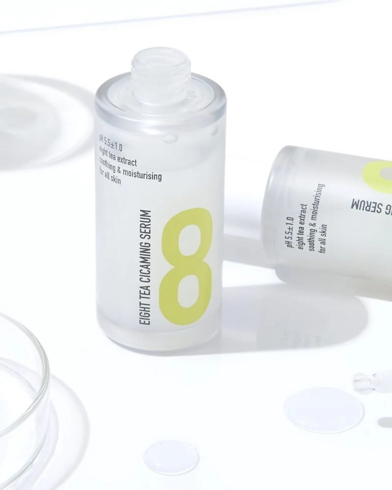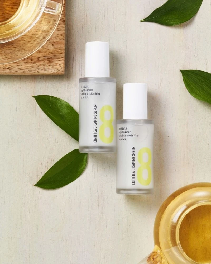 El sérum Calmante e Hidratante de Ocho Tés (38 ml) está formulado con ocho tipos de té, extracto de Centella Asiática y ceramidas que actúan conjuntamente para ayudar a prevenir la pérdida de hidratación y, a su vez, aumentar la hidratación de la piel. El extracto de Centella Asiática es conocido por su capacidad cicatrizante, que restaura la barrera cutánea dañada y calma la piel irritada.
